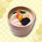 具は『たけのこ・ほうれん草・鶏肉・エビ・椎茸・かまぼこ・銀杏』 7種類もの具材が入って、鰹出汁を効かせたやさしい味わいでお寿司にぴったりです。 冷めにくい素材のお茶碗でアツアツでお届けします。ヤケドに…