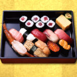 【内容】 大トロ いか 天然みなみ鮪赤身 はまち 中トロ 丸生赤海老(頭付き) 一本穴子 赤貝 いくら軍艦 うに軍艦 鉄火巻1本 厚焼き玉子
